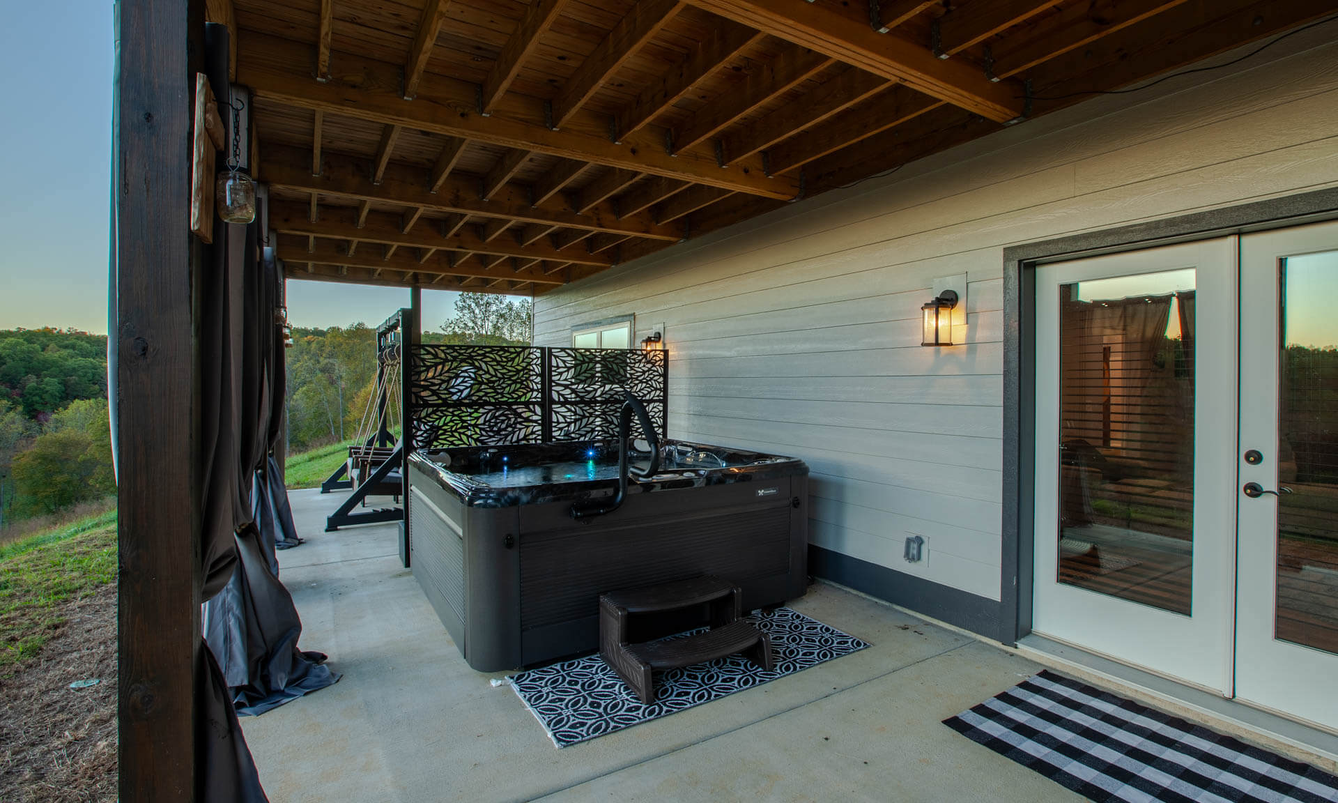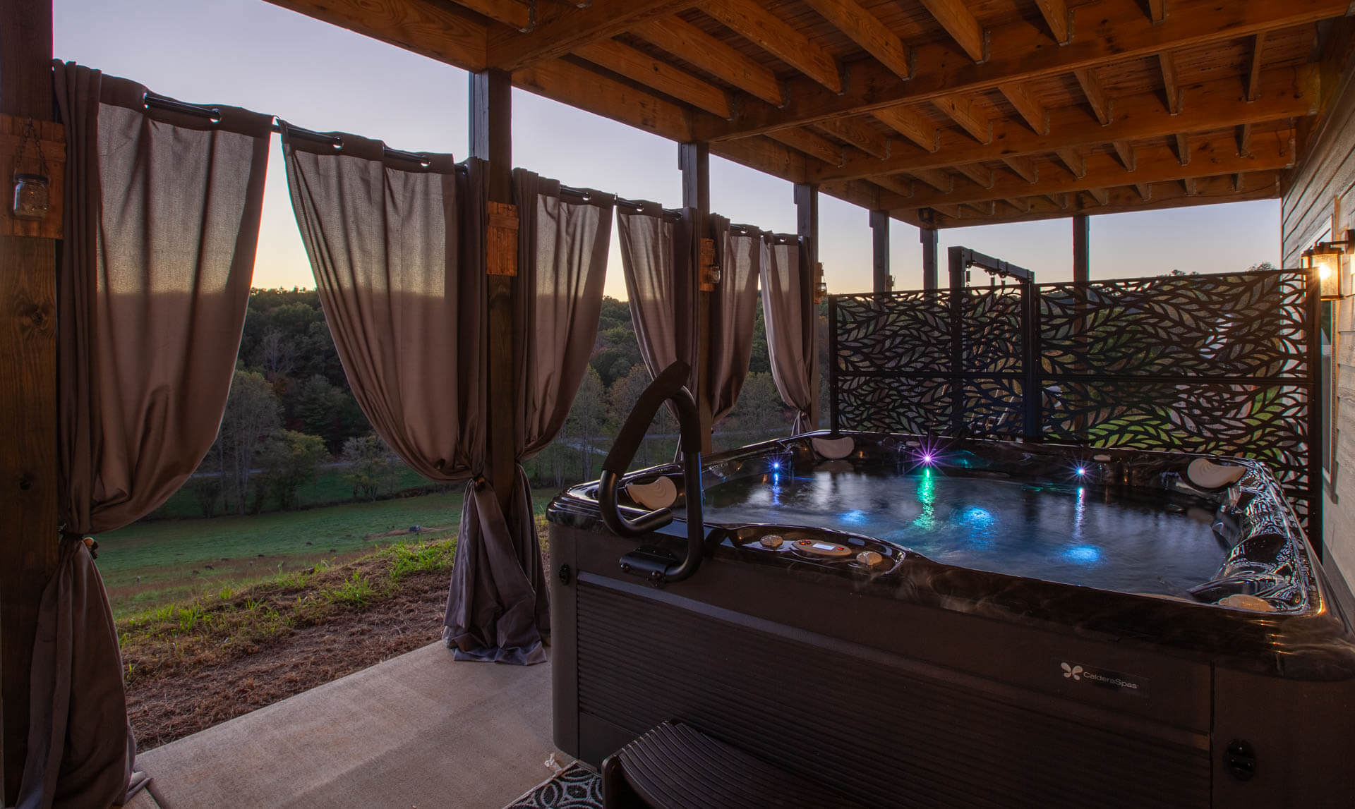 Perfect for quality time together, make a martini (shaken not stirred), turn on a movie, and sink into the luxe seating. Before bed, unwind with a soak in the hot tub surrounded by the stars and curtain privacy wall.