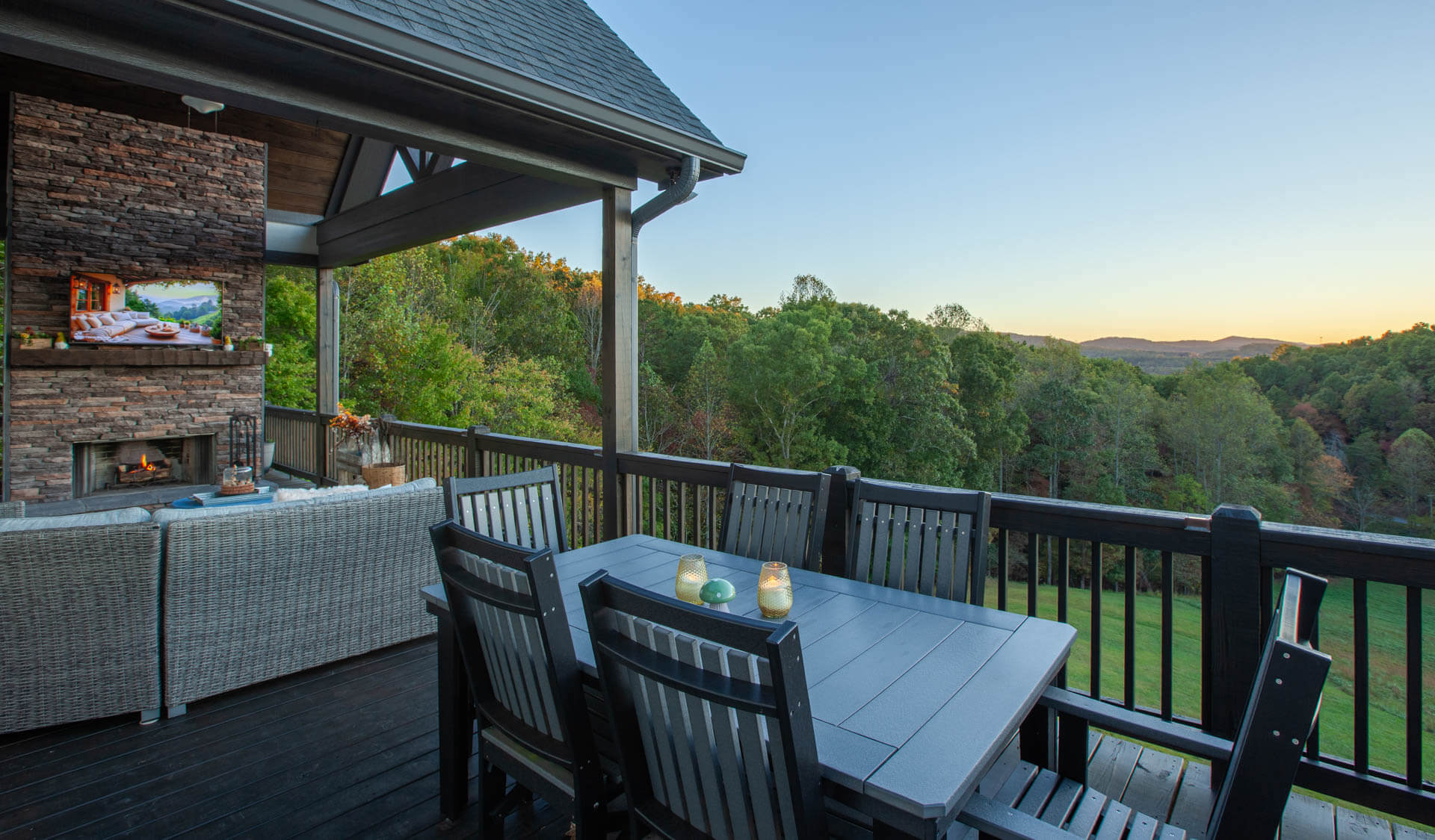 Skyfall’s wrap-around decks are designed to celebrate the mountains from every angle. Sip your morning coffee as foggy mists and deer herds roll through the valley and share alfresco dinners at the outdoor dining table as the sun sets behind the trees.