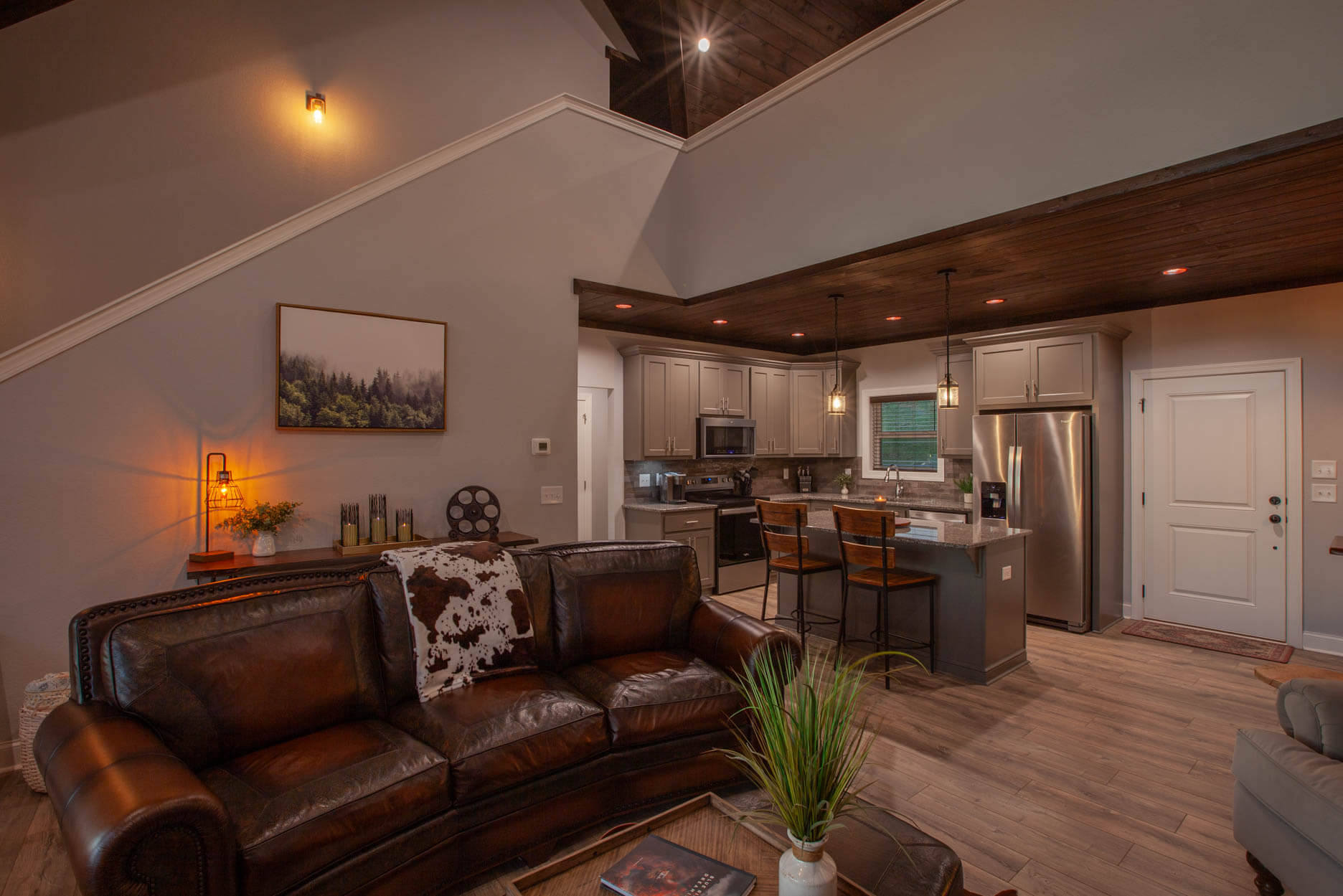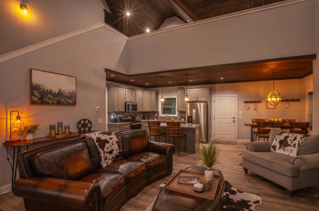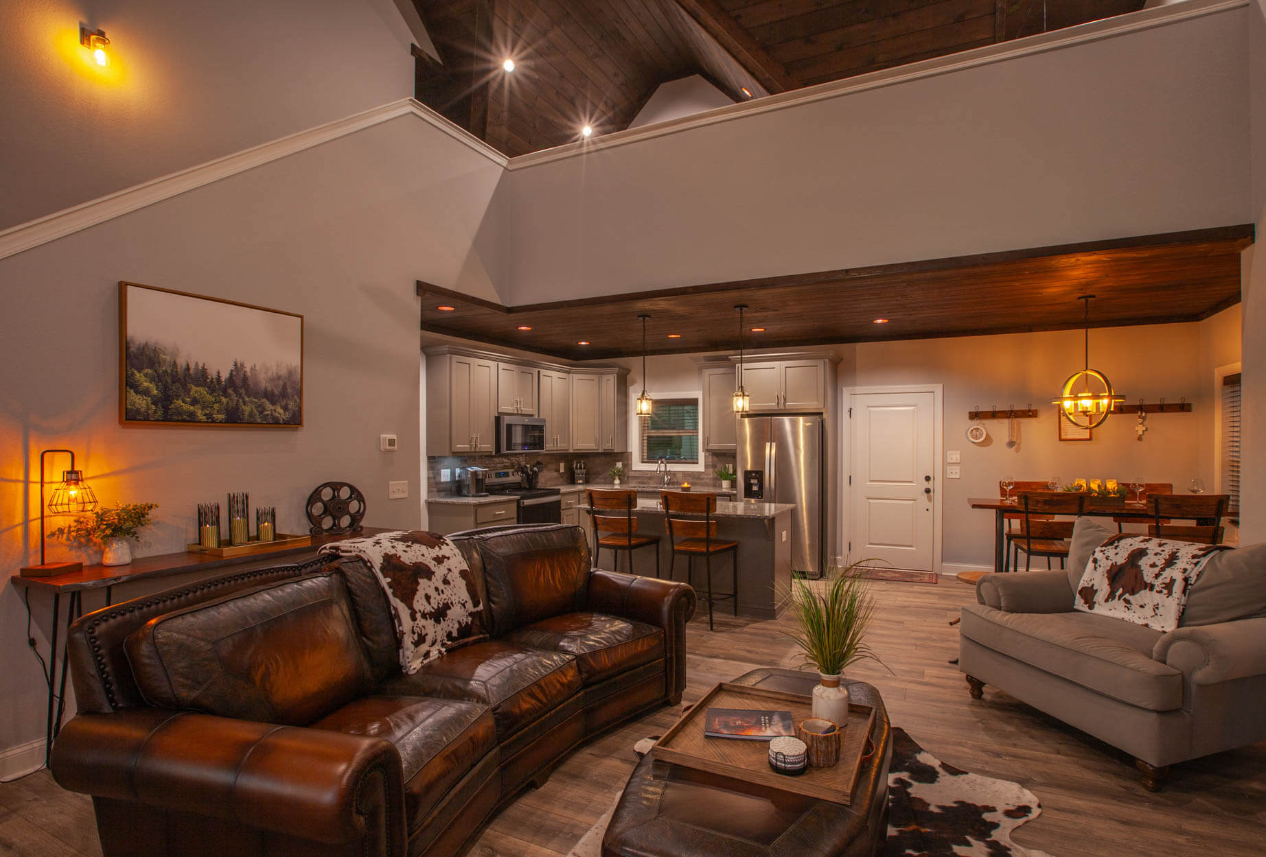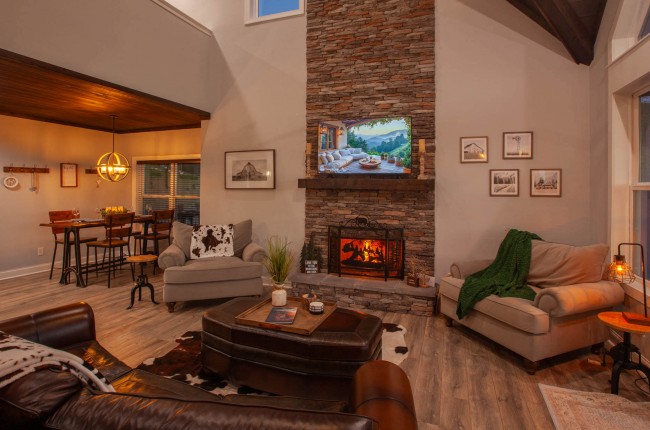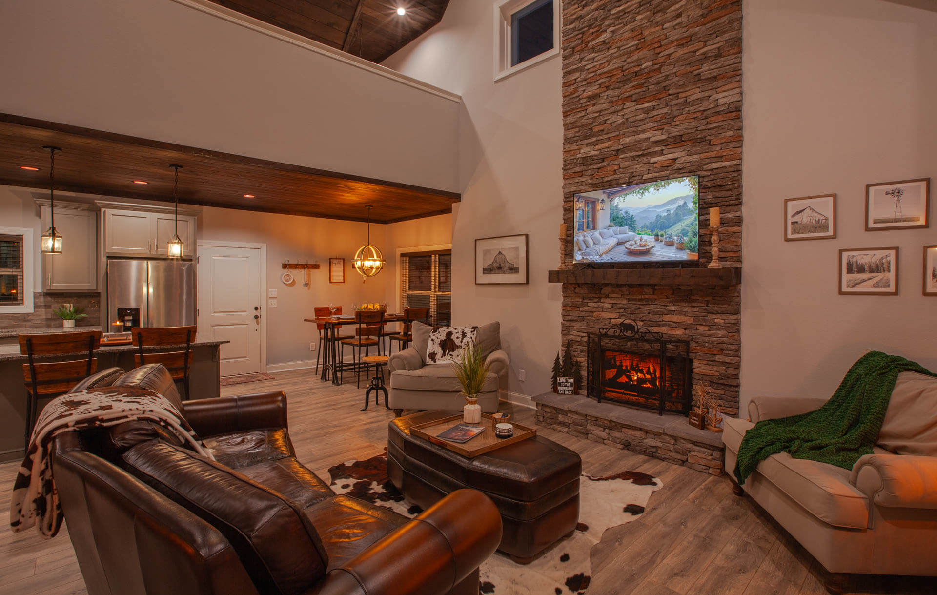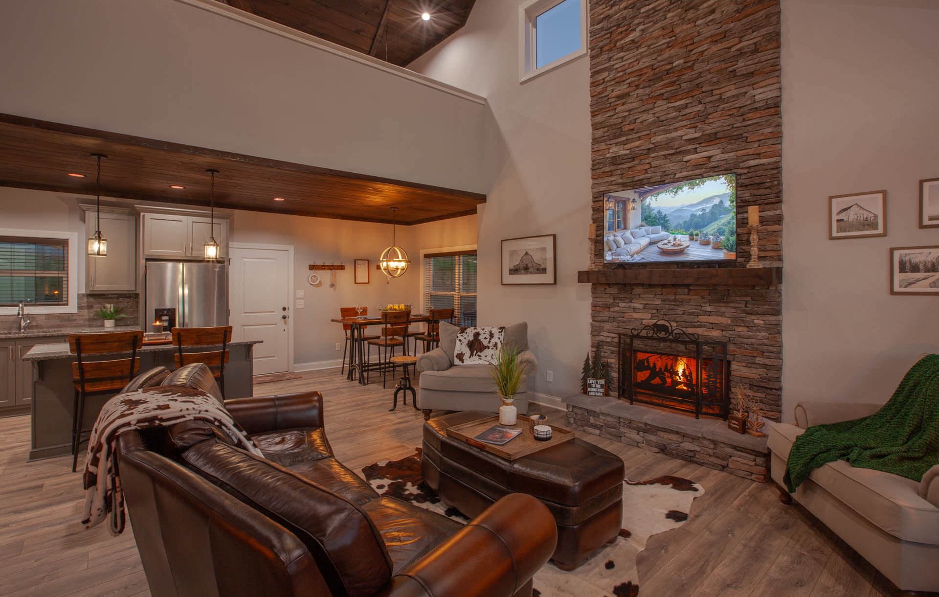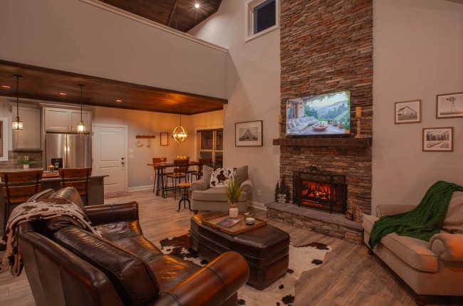 Inspired by the iconic James Bond film and franchise, Skyfall lives up to its name. Sleek and sophisticated, this luxury cabin boasts 4-bedrooms, 3.5-bathrooms just 20 minutes from Downtown Blue Ridge.