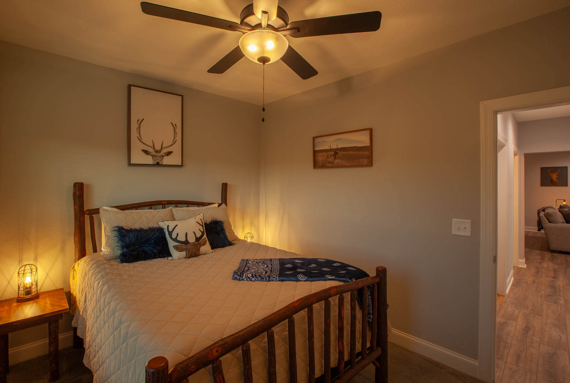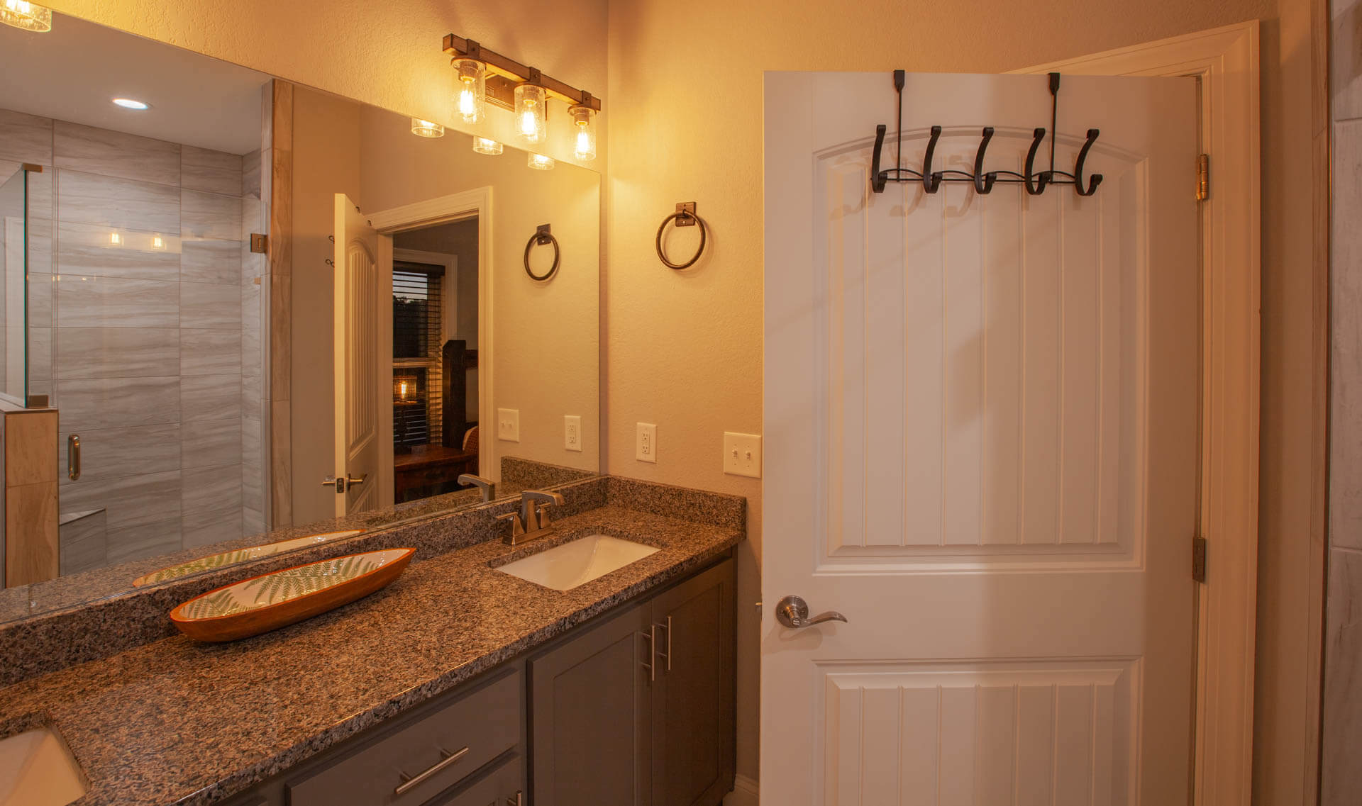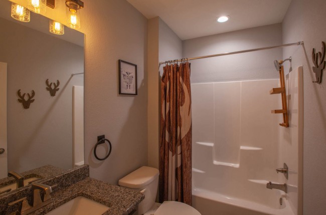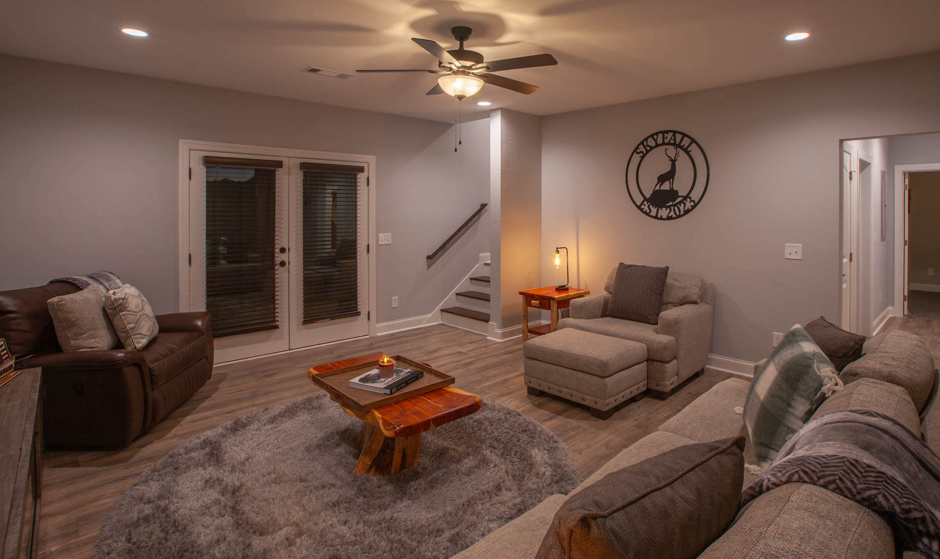 Each of Skyfall’s four bedrooms is a sanctuary of comfort, featuring premium linens and King/Queen beds. The main level Master king suite offers a smart TV and spa-like en-suite bath with double vanities and a spacious walk-in shower. Upstairs, one Queen suite awaits situated off of the reading loft. Enjoy elevated mountain views from this floor, ensuite bath, and TV. On the terrace level, two Queen bedrooms provide restful repose with a shared bathroom.Â