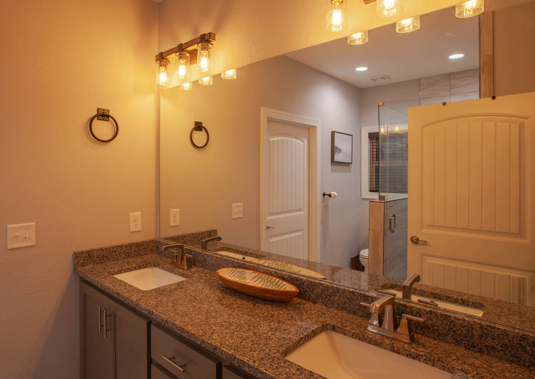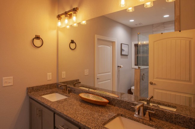 King Master Suite w/ ensuite Bath - King bed, Smart TV, spacious bath - walk-in shower, double vanities w/ granite